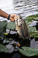 tangled in grass. The 10-pound test Trilene line held as he worked the fish to the boat without any problems.