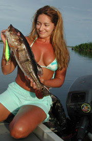commission until Banana could get my smaller fish unhooked, I looked on in awe. My partner quickly shot another cast back to the spot and started to work his bait back to the boat. Banana finished his