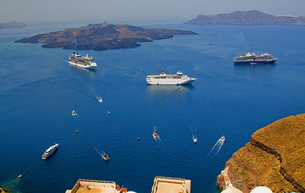 The Greek island archipelago of Santorini is a great destination to visit and the cruise ships know it. When