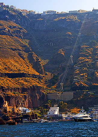 else to go. Two options for the impatient are either to hike up a very steep 45-minute walkway to the town of Fira or to ride a donkey up that very same switchback